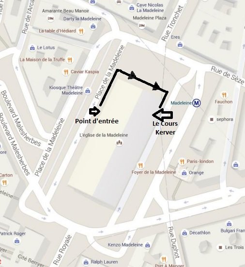 Les cours se tiennent dans un endroit très particulier, une crypte située sous l´Eglise de la Madeleine, du côté du marché aux fleurs, sur la droite en venant de la place de la Concorde.